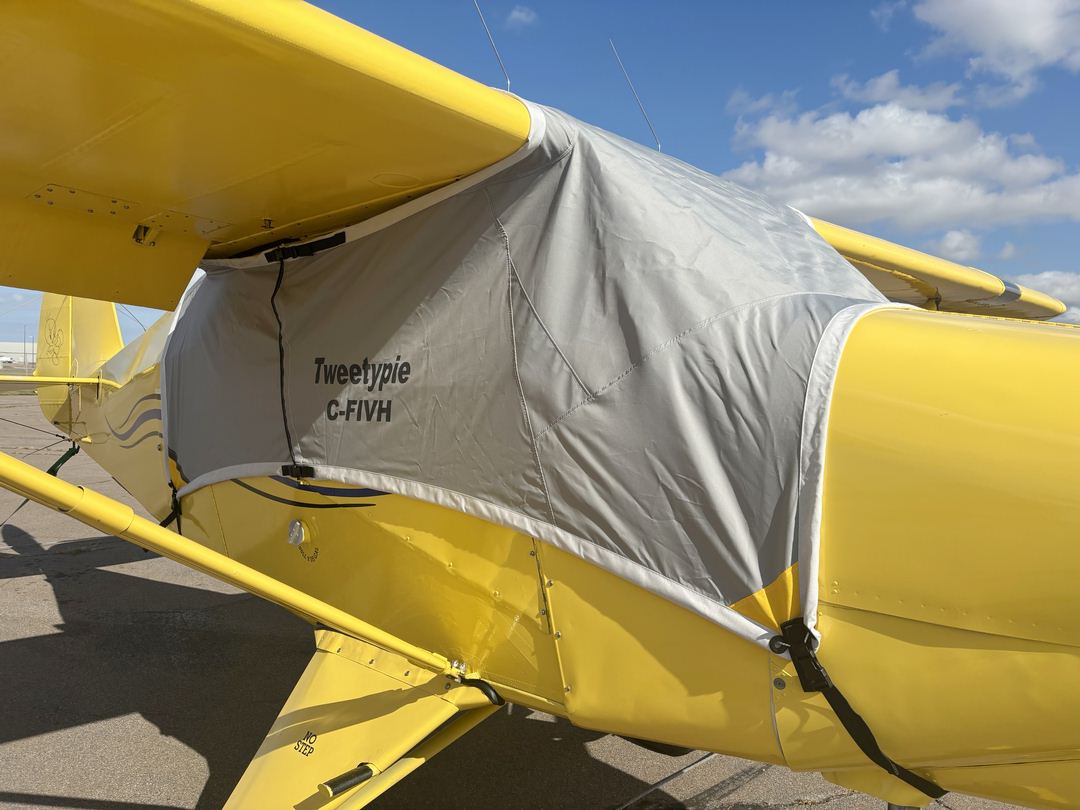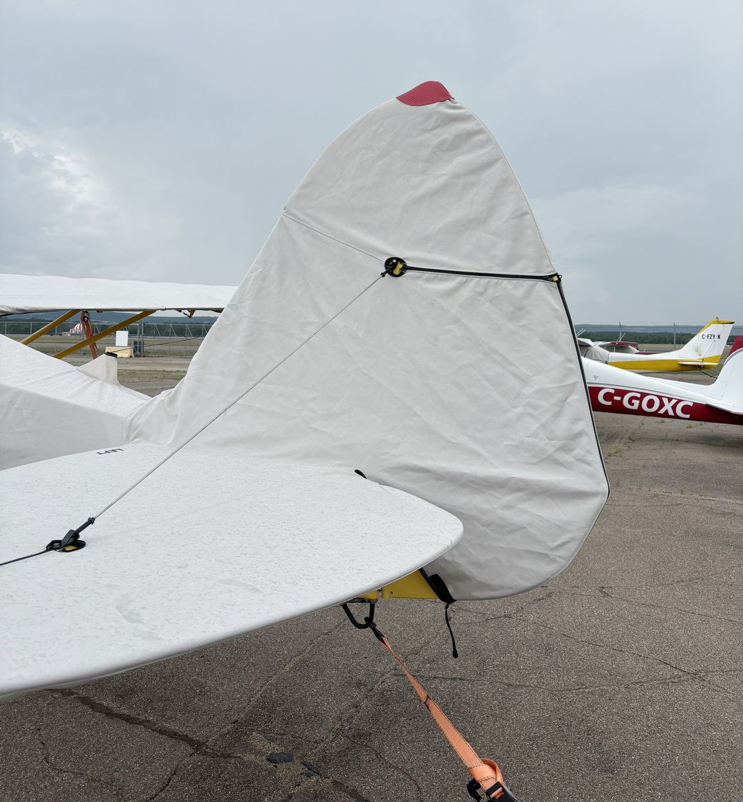 The Piper Clipper, Pacer, Tri-Pacer, Vagabond, Colt: PA-15, 16, 20, 22 Wing Covers are a perfect solution to protect your paint from sun damage and prevent winter frost, snow, ice buildup, and corrosion. They are made from Solution-Dyed Polyester or Acrylic Sunbrella and form-fit to slip around each wing tip, cover the entire upper surface of the wing and wrap around the leading and trailing edges. The covers secure under the wing with adjustable straps from the trailing edge to the leading edge. The wing covers can also attach to each other with adjustable straps at the leading and trailing edges of the wing under the belly of the plane. In some instances, cut-outs are made in the trailing edge of the wing covers to accommodate static wicks. We have the ability to also accommodate wing tip modifications, such as STOL kits, droop tips, and vortex generators. Wing covers are labeled LEFT and RIGHT for your convenience. Wing Covers are available for winter use or long-term, all-year use. A Hail Protection version can be made which incorporates very dense closed cell foam into the entire upper surface of the wing covers to help prevent hail damage. Although these covers are bulky, they do help protect your wing and control surfaces against small to medium-size hail.... leer más