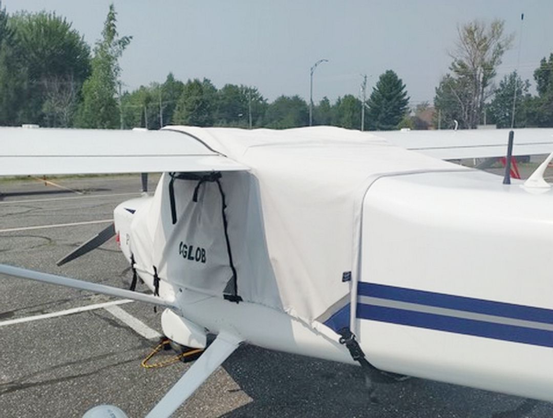 The Ultravia Pelican Wing Covers are a perfect solution to protect your paint from sun damage and prevent winter frost, snow, ice buildup, and corrosion. They are made from Solution-Dyed Polyester or Acrylic Sunbrella and form-fit to slip around each wing tip, cover the entire upper surface of the wing and wrap around the leading and trailing edges. The covers secure under the wing with adjustable straps from the trailing edge to the leading edge. The wing covers can also attach to each other with adjustable straps at the leading and trailing edges of the wing under the belly of the plane. In some instances, cut-outs are made in the trailing edge of the wing covers to accommodate static wicks. We have the ability to also accommodate wing tip modifications, such as STOL kits, droop tips, and vortex generators. Wing covers are labeled LEFT and RIGHT for your convenience. Wing Covers are available for winter use or long-term, all-year use. A Hail Protection version can be made which incorporates very dense closed cell foam into the entire upper surface of the wing covers to help prevent hail damage. Although these covers are bulky, they do help protect your wing and control surfaces against small to medium-size hail.... leer más