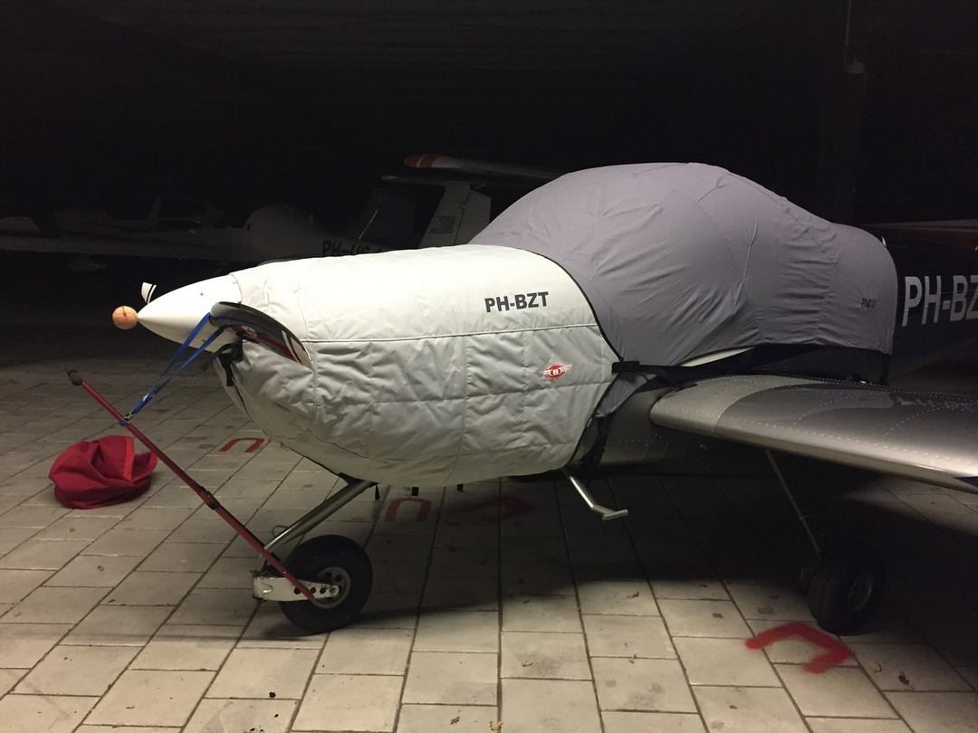The Van's Aircraft RV-12 & RV-12is Wing Covers are a perfect solution to protect your paint from sun damage and prevent winter frost, snow, ice buildup, and corrosion. They are made from Solution-Dyed Polyester or Acrylic Sunbrella and form-fit to slip around each wing tip, cover the entire upper surface of the wing and wrap around the leading and trailing edges. The covers secure under the wing with adjustable straps from the trailing edge to the leading edge. The wing covers can also attach to each other with adjustable straps at the leading and trailing edges of the wing under the belly of the plane. In some instances, cut-outs are made in the trailing edge of the wing covers to accommodate static wicks. We have the ability to also accommodate wing tip modifications, such as STOL kits, droop tips, and vortex generators. Wing covers are labeled LEFT and RIGHT for your convenience. Wing Covers are available for winter use or long-term, all-year use. A Hail Protection version can be made which incorporates very dense closed cell foam into the entire upper surface of the wing covers to help prevent hail damage. Although these covers are bulky, they do help protect your wing and control surfaces against small to medium-size hail.... leer más